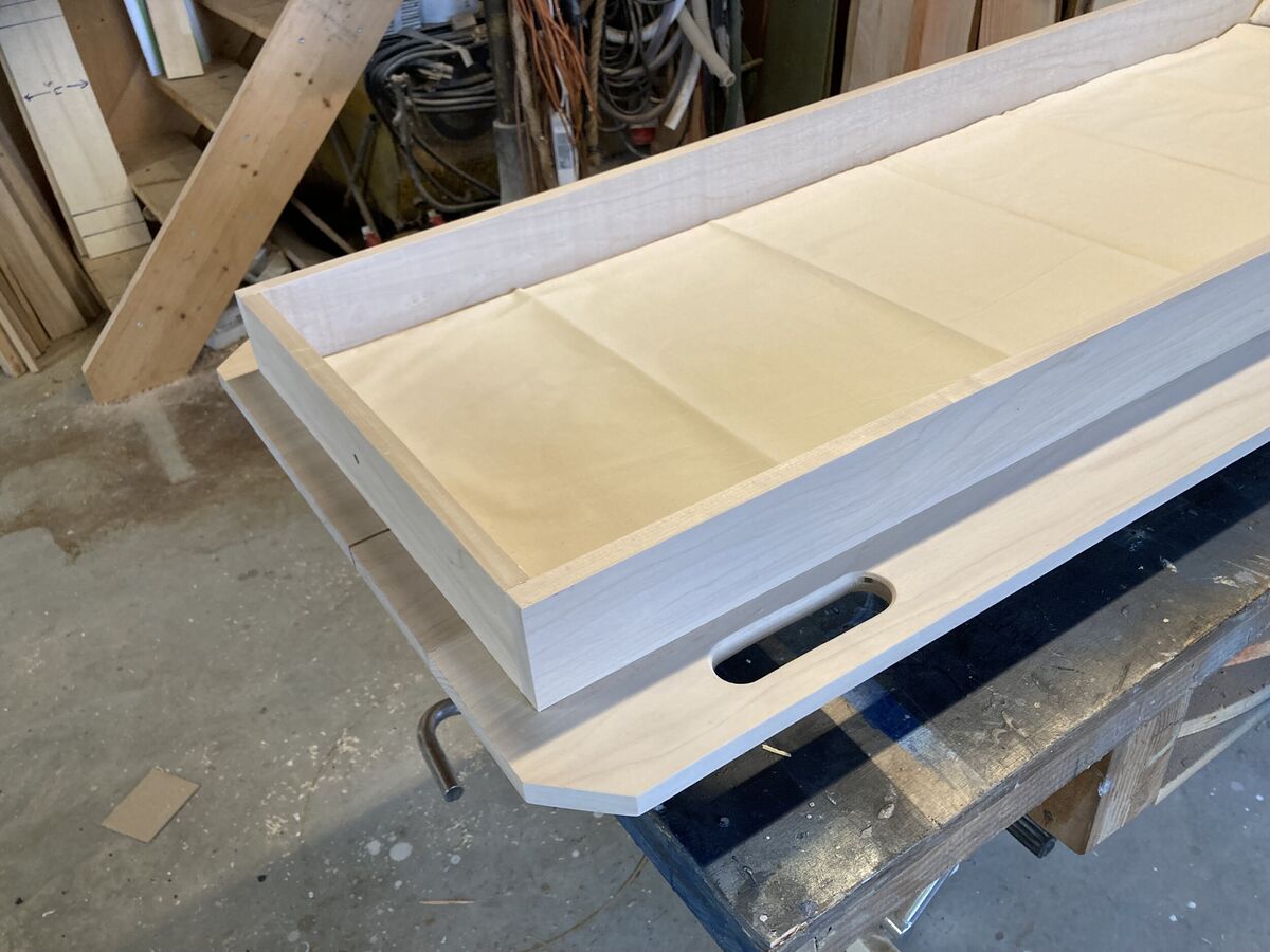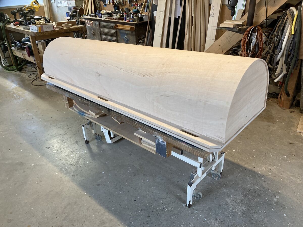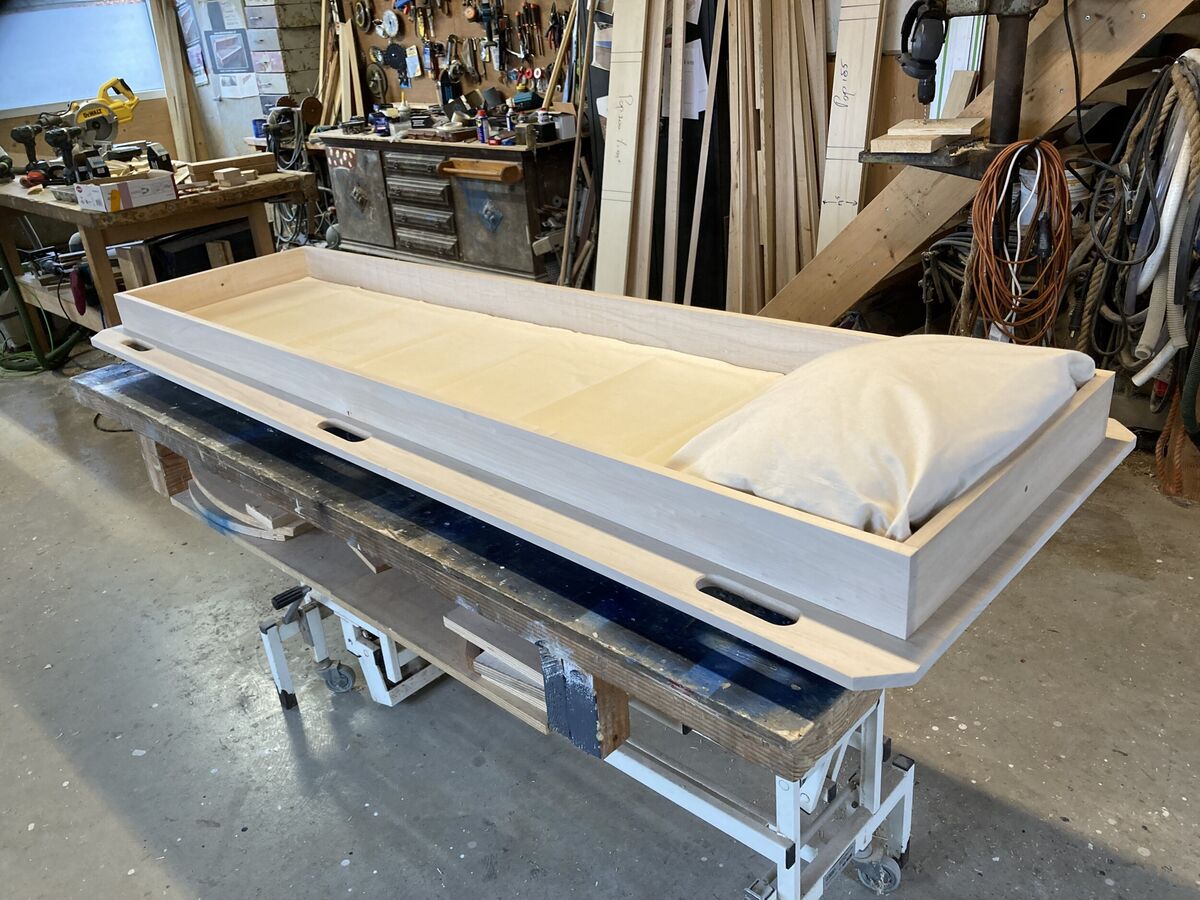 - De opbaarplank is gemaakt van massief populierenhout, en het deksel is gemaakt van populieren multiplex.