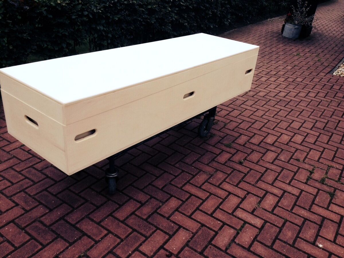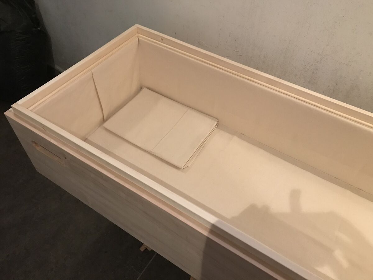 Uitvaartkist gemaakt van mooi warm populieren multiplex.